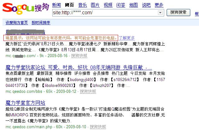 此前發(fā)布的《瑞星互聯(lián)網(wǎng)安全報告》指出,2008年1月至10月,瑞星公司共截獲新病毒樣本930余萬個,其中90%通過網(wǎng)頁掛馬方式傳播,而通過搜索引擎進入掛馬網(wǎng)站的用戶占據(jù)所有受害網(wǎng)民的30%以上。此次瑞星與搜狗的合作,可以將搜索結(jié)果中的掛馬網(wǎng)站明明白白的標(biāo)示出來,避免用戶進入此類網(wǎng)站而被感染。