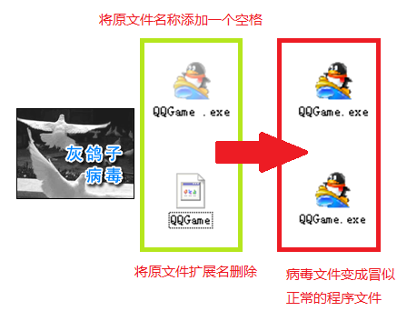 病毒運(yùn)行后,首先會(huì)檢查電腦當(dāng)前正在執(zhí)行的常用軟件進(jìn)程,隨后將這些進(jìn)程重命名為“原名稱(chēng)+空格.exe”或者去掉.exe的擴(kuò)展名,同時(shí)將病毒復(fù)制成正常軟件名稱(chēng),并使用原程的圖標(biāo),使用戶(hù)無(wú)法分辨。用戶(hù)運(yùn)行被篡改的程序時(shí),病毒隨即啟動(dòng),為加強(qiáng)偽裝,病毒還會(huì)打開(kāi)正常軟件,使用戶(hù)感覺(jué)不到異常。