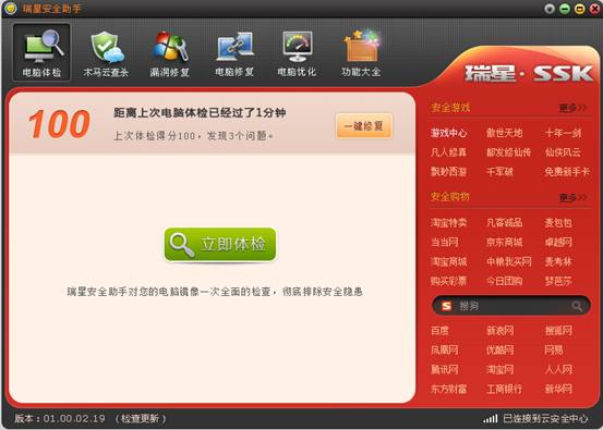 2011-08-02 13:16:20“瑞星已經開始布局移動存儲市場”。近日,瑞星公司相關人士透露,瑞星與深圳大乘科技有限公司攜手推出“瑞星安全助手SSK特別版”安全U盤產品。“該產品是將瑞星安全助手無縫植入到SSK系列移動存儲設備中,用戶無需安裝任何軟件,插上U盤即可使用瑞星殺毒、打補丁、系統優化等安全功能。”