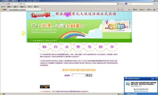 2011-08-17 14:13:42“最近網上出現大量假冒新浪微博的網站!”近日,瑞星云安全系統的數據顯示,黑客利用網民對微博的關注熱度,以巨額獎金作為“誘餌”,設立釣魚騙局,用戶一旦輕信,便會上當。輕者導致微博賬號、密碼被盜,嚴重者將被騙錢財。