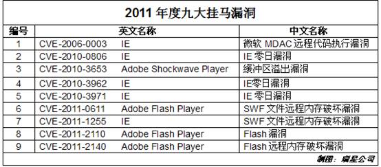 瑞星公司統計了黑客用來掛馬的9大漏洞,存在漏洞的軟件集中在瀏覽器和flash插件上。Flash作為一種純網絡化、跨平臺的應用,其在移動平臺上的安全風險也不可低估,例如在安卓系統上,就有可被利用來進行掛馬的Flash漏洞,隨著智能手機、平板運算能力的增加,未來可能在移動平臺出現大量的掛馬攻擊。