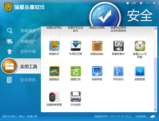 瑞星殺毒軟件2012新增開機優化、電腦修復、垃圾清理等功能,全面保護用戶的電腦安全