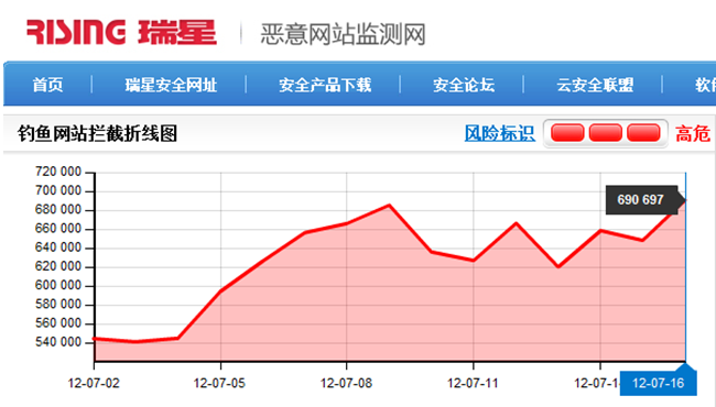 數據顯示,進入7月以來釣魚網站的攻擊次數呈明顯增加趨勢