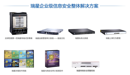 瑞星企業級共有七個系列,數十種產品,包括瑞星防毒墻系統、網絡安全預警系統、殺毒軟件網絡版、“私有云”平臺、內網審計系統、上網行為管理系統和運維管理審計系統等全系列產品,已經涵蓋了市面上所有企業級安全產品,形成了一套“防于外?治于內?理于全”的安全防護體系,能夠滿足不同規模、不同行業企業用戶的信息安全需求。