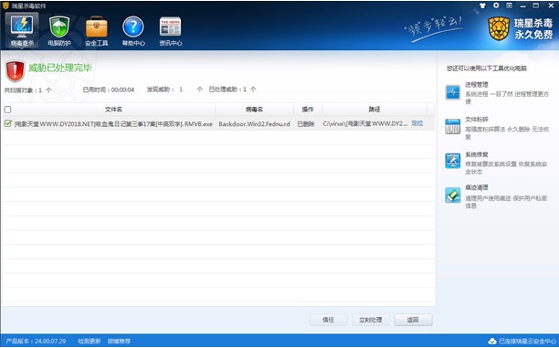瑞星殺毒軟件V16查殺偽裝吸血鬼日記的后門(mén)病毒