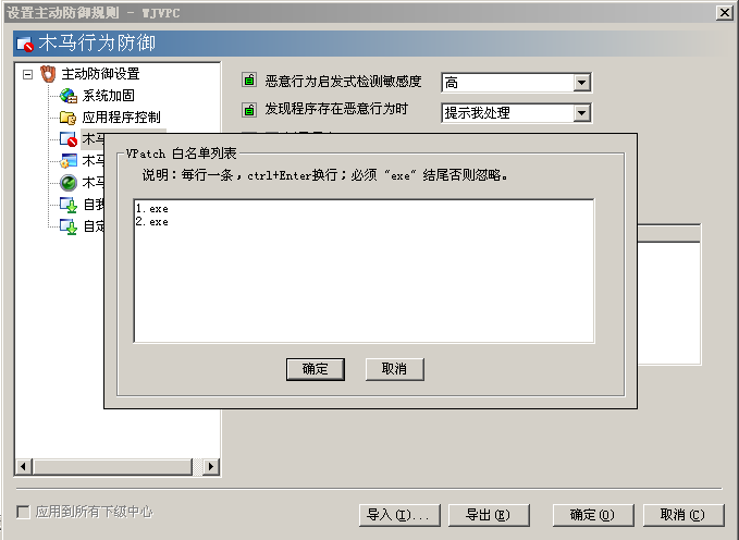 管理員可以對啟用了 XP VPatch防護功能的客戶端或組,定制進程白名單,這樣可以根據用戶的實際使用需要,使VPatch防護功能對某些特定的程序不生效,不保護相應程序。